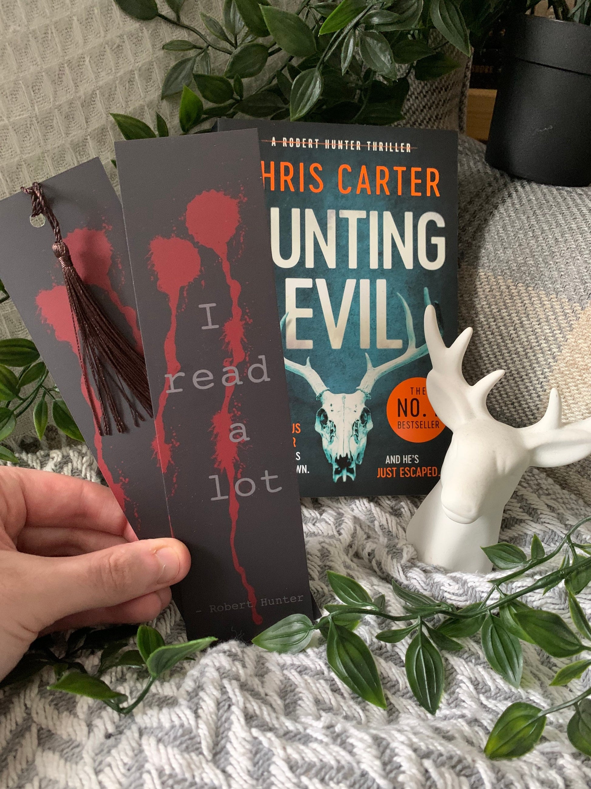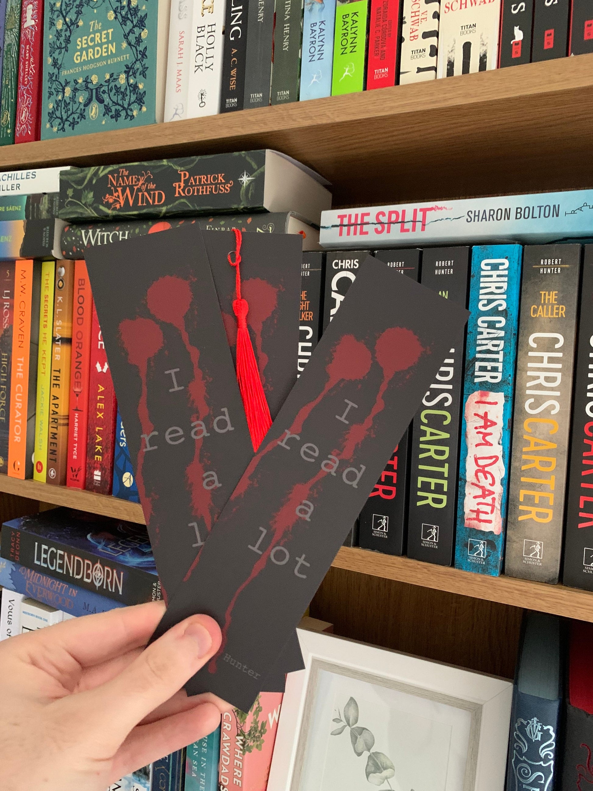 “I Read A lot” quote bookmark both appropriate to anyone on bookstagram/booktok and a quote from the popular crime/thriller series by Chris Carter.