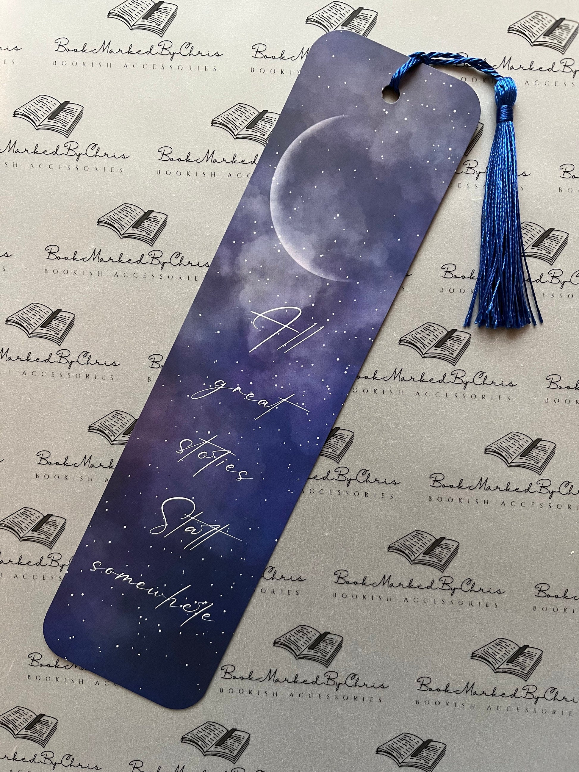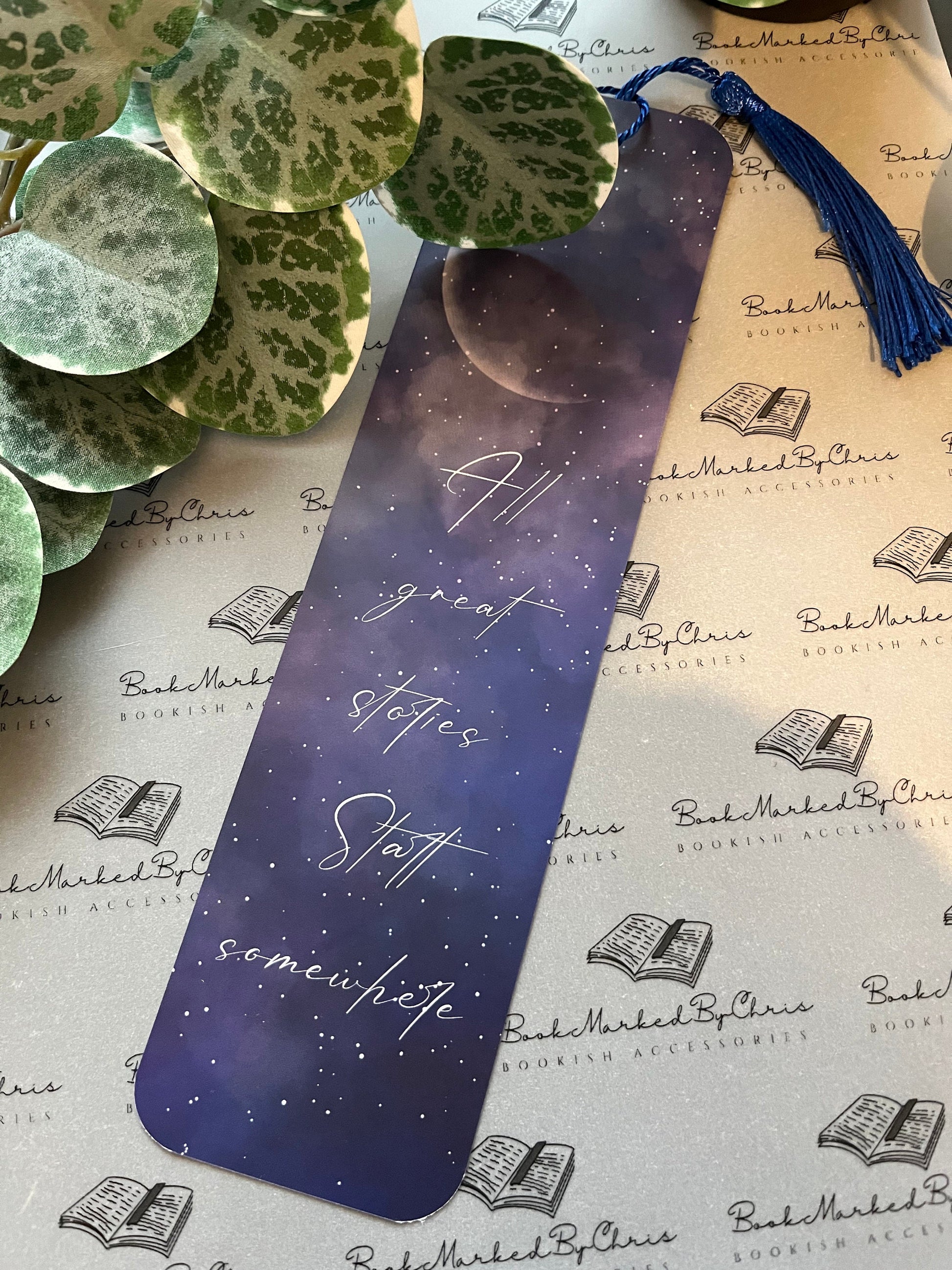 New to the store, this beautiful bookmark is designed for any reader. With a simplistic design this bookmark makes the perfect gift for any reader. "All great stories start somewhere" written in the stars.